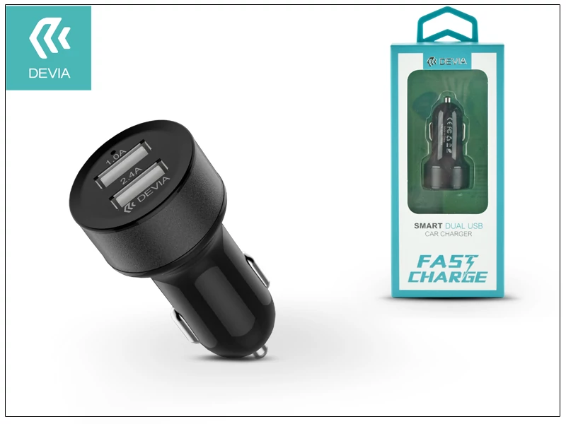 Devia Smart Dual USB szivargyújtós töltő adapter - Devia Smart Dual USB Fast Charge - 5V/2,4A - black