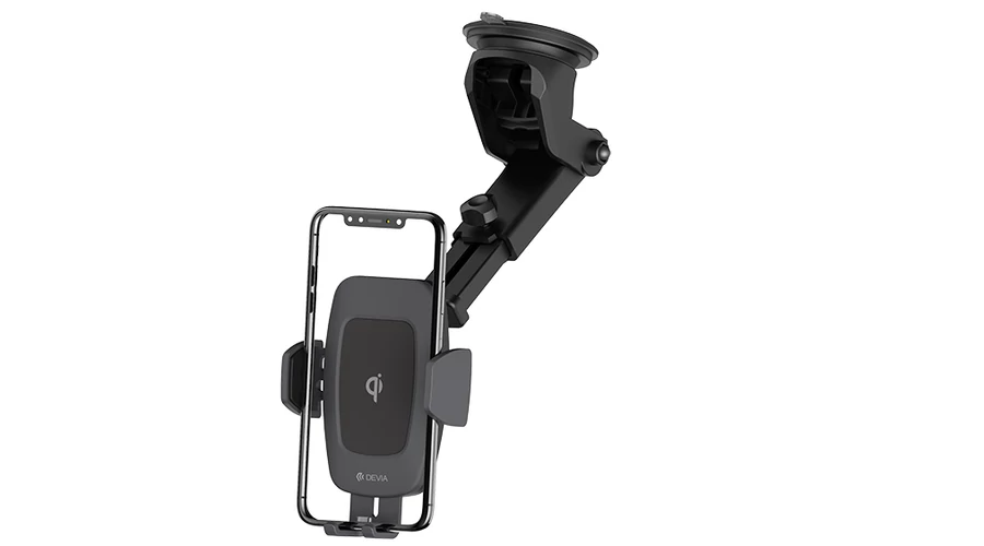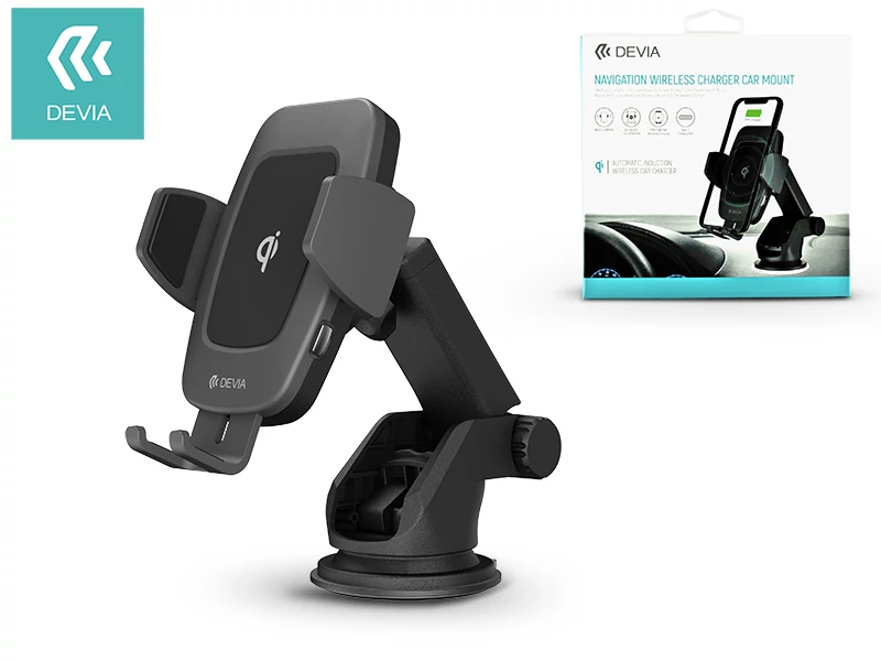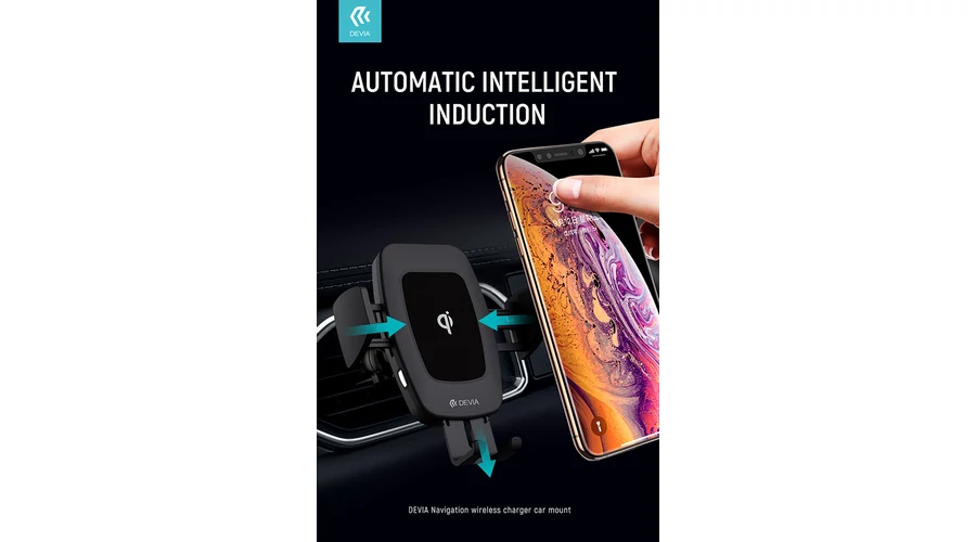 Devia szellőzőrácsba illeszthető / műszerfalra ragasztható vezeték nélküli autós töltő/tartó - 5V/2A - Devia Navigation Wireless Charger Car Mount - 10W - Qi szabványos