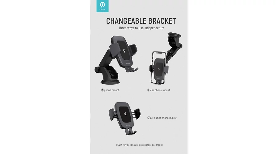 | Devia szellőzőrácsba illeszthető / műszerfalra ragasztható vezeték nélküli autós töltő/tartó - 5V/2A - Devia Navigation Wireless Charger Car Mount - 10W - Qi szabványos | |