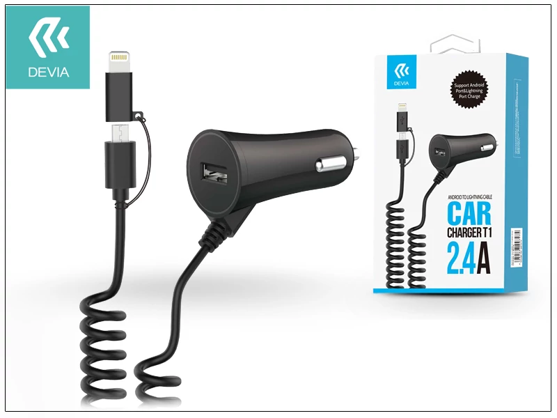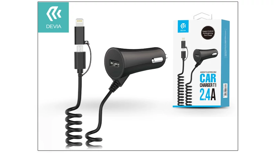 | Devia szivargyújtó töltő micro USB + Lightning csatlakozóval - 5V/2,4A - Devia Cable Charger T1 - black | |