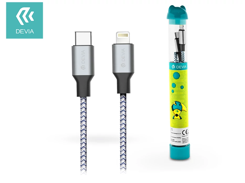 | Devia Type-C - Lightning töltő- és adatkábel 1 m-es vezetékkel - Devia Tube Type-C to Lightning Quick Charge - 3A - silver/blue | |