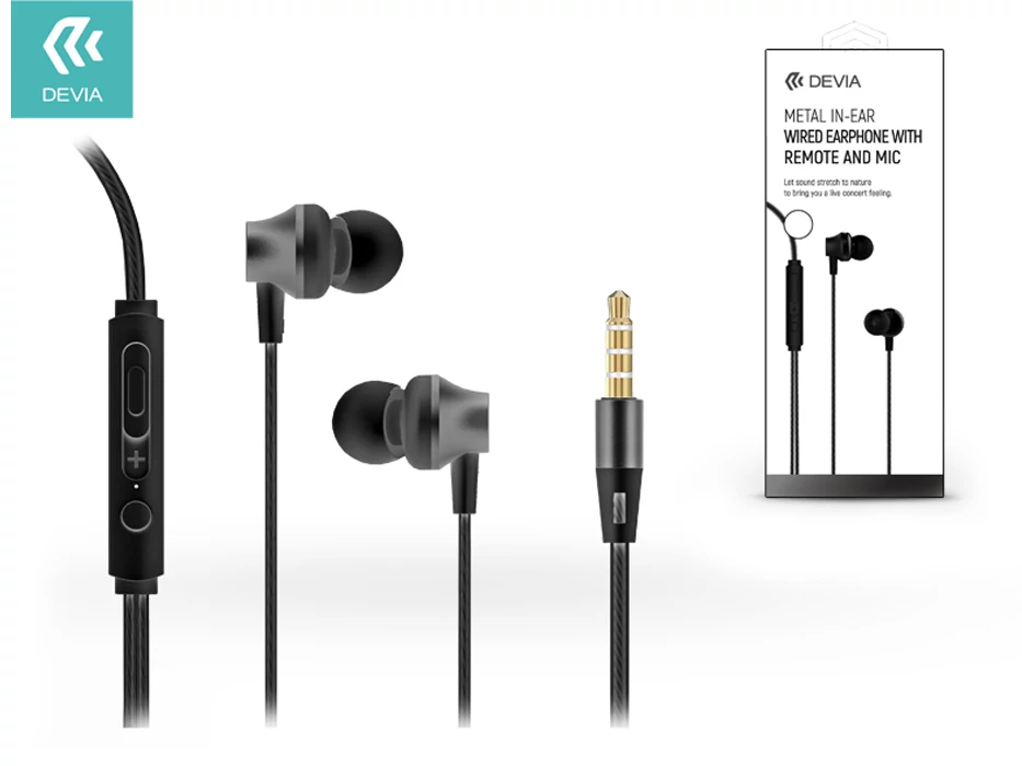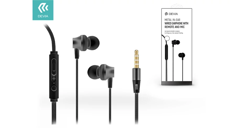 | Devia univerzális sztereó felvevős fülhallgató - 3,5 mm jack - Devia Metal In-Ear Wired Earphones - black | |