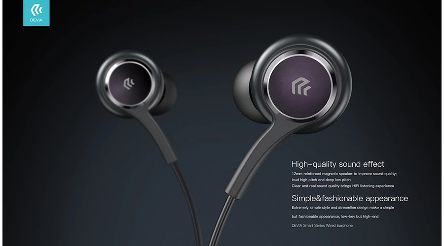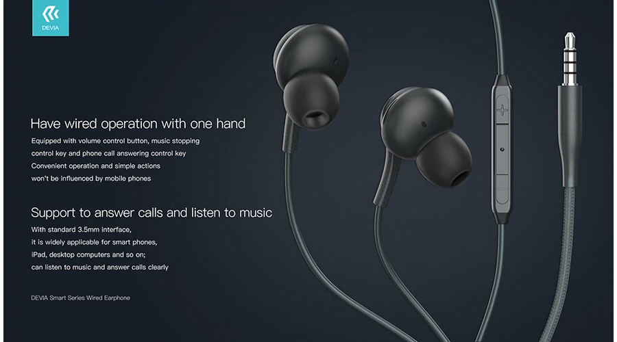 | Devia univerzális sztereó felvevős fülhallgató - 3,5 mm jack - Devia Smart Series Wired Earphone EM20 - black | |