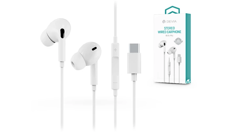 Devia univerzális sztereó felvevős fülhallgató - Type-C - Devia Smart Series Stereo Wired Earphone - white