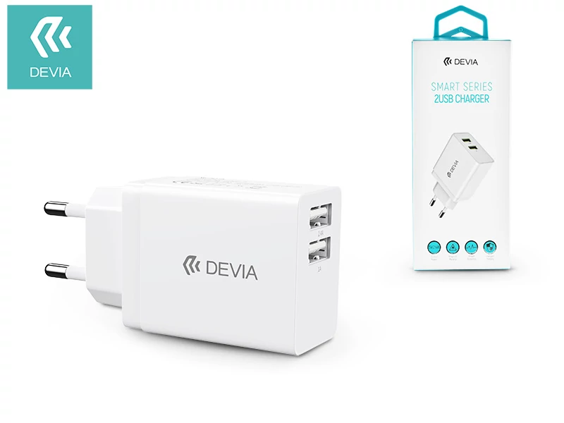 | Devia univerzális USB hálózati töltő adapter 2xUSB - 5V/2,4A - Devia Smart Series 2 USB Charger - white | |
