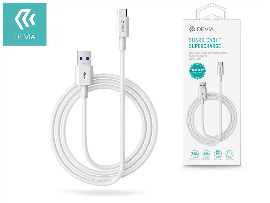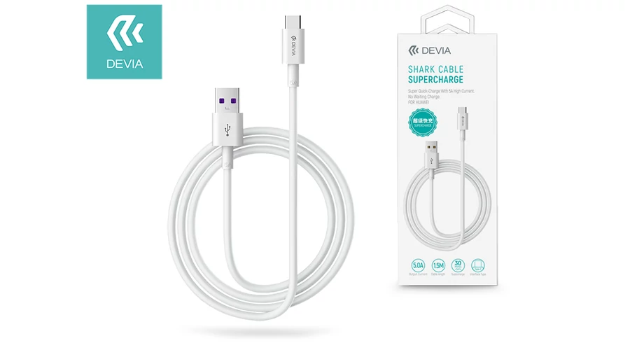 Devia USB - USB Type-C töltő- és adatkábel 1,5 m-es vezetékkel - Devia Shark Supercharge USB Type-C - 5A - white