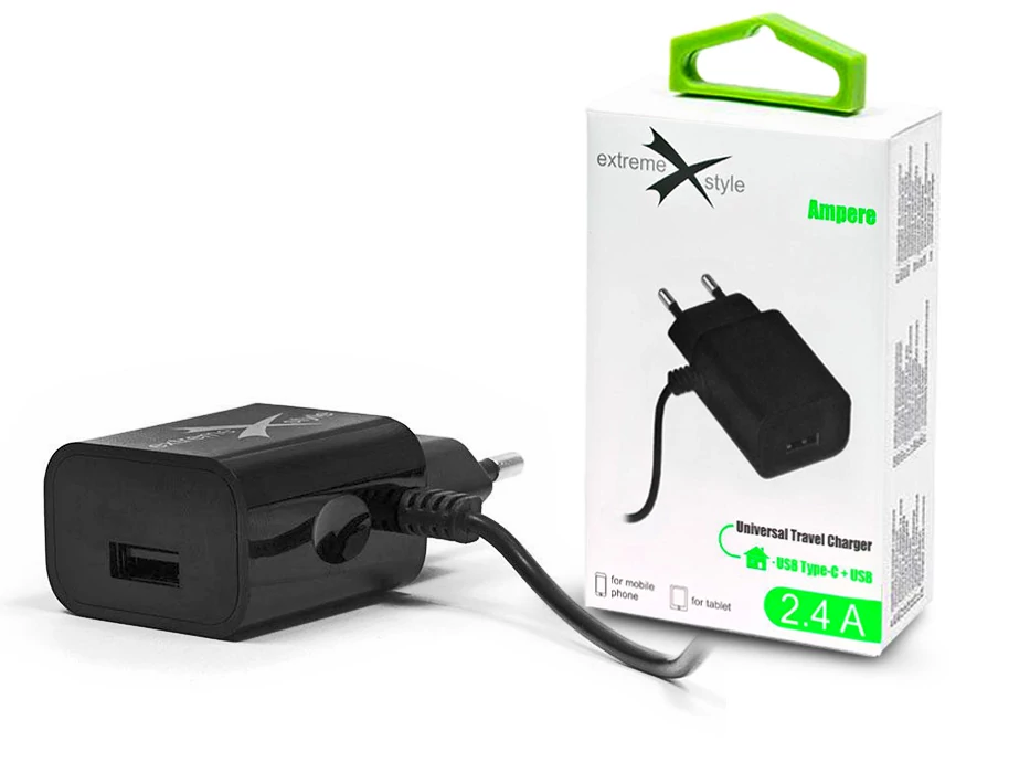 Extreme hálózati töltő Type-C kábellel + USB csatlakozóval - 5V/2.4A - Extreme LAD0242 - fekete