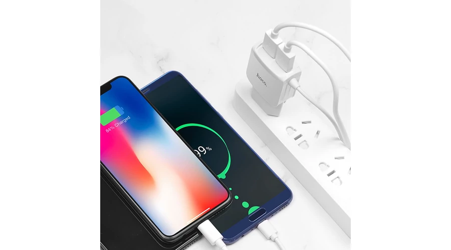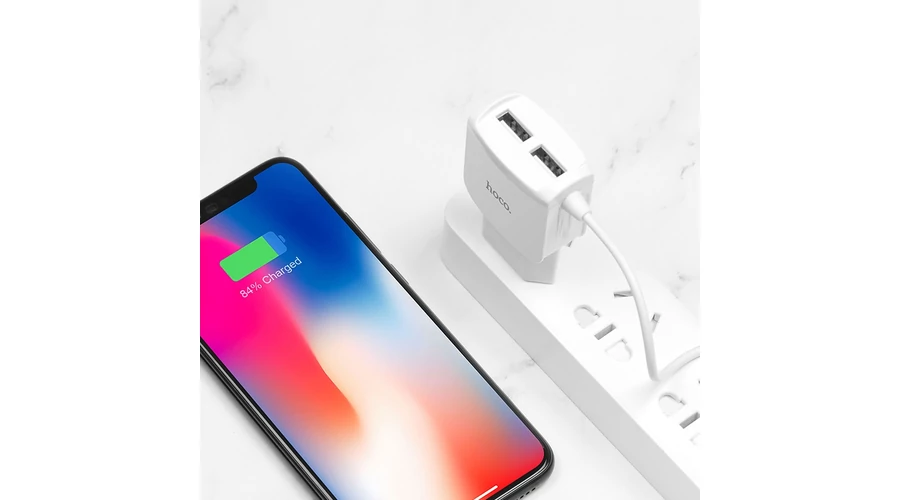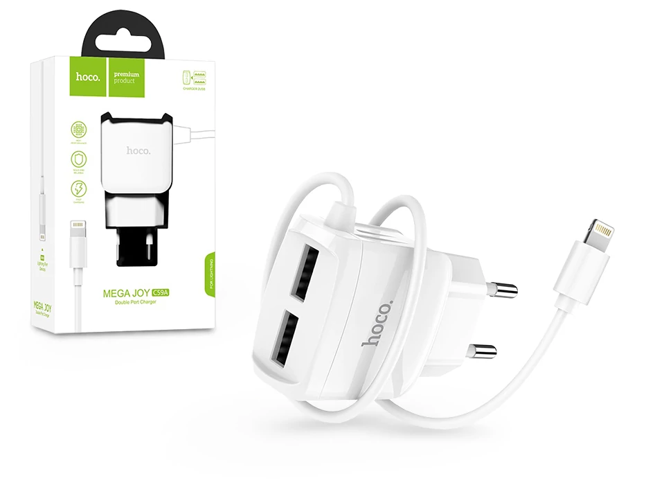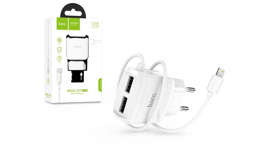 HOCO 2xUSB Lightning hálózati töltő - 5V/2,4A - HOCO C59A Mega Joy - fehér