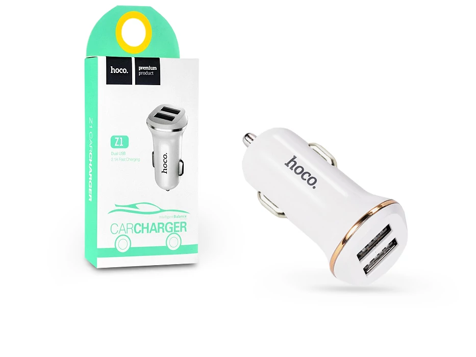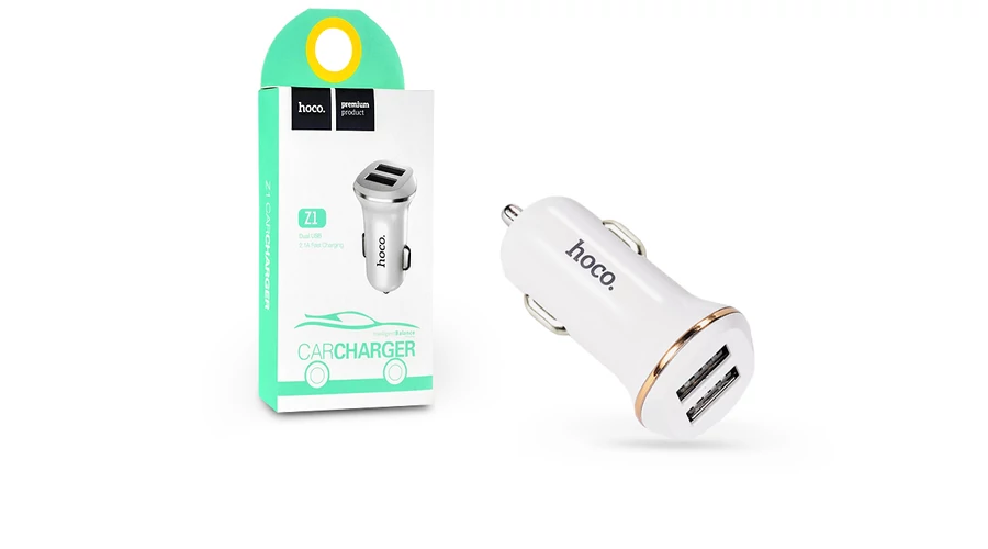 | HOCO 2xUSB szivargyújtós töltő adapter - 5V/2,1A - HOCO Z1 - fehér | |