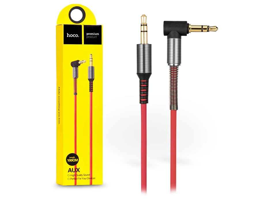 HOCO 3,5 - 3,5 mm jack audio kábel 1 m-es vezetékkel - HOCO UPA02 Aux Audio Cable - fekete/piros