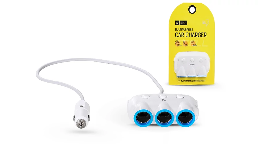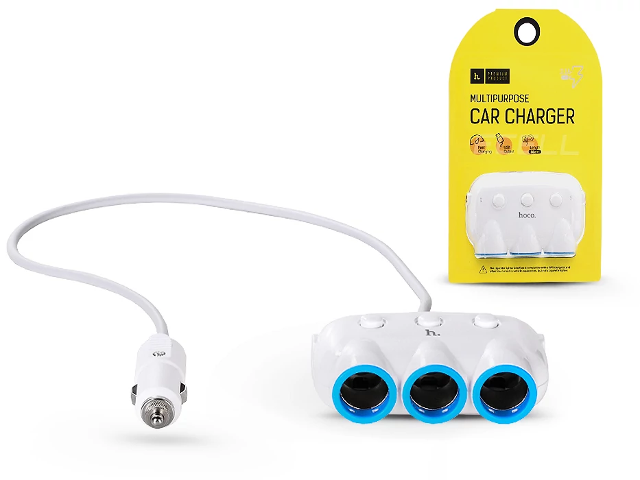 | HOCO 3x szivargyújtó töltő elosztó + 2x USB csatlakozó 55 cm-es vezetékkel - 5V/3.1A - 15,5W - HOCO C1 - fehér | |