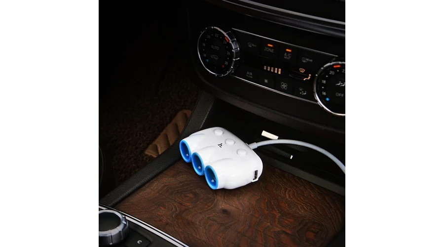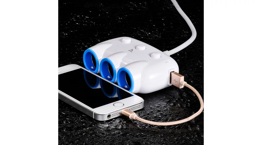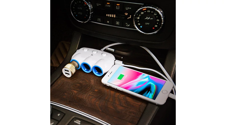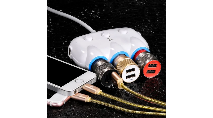 HOCO 3x szivargyújtó töltő elosztó + 2x USB csatlakozó 55 cm-es vezetékkel - 5V/3.1A - 15,5W - HOCO C1 - fehér