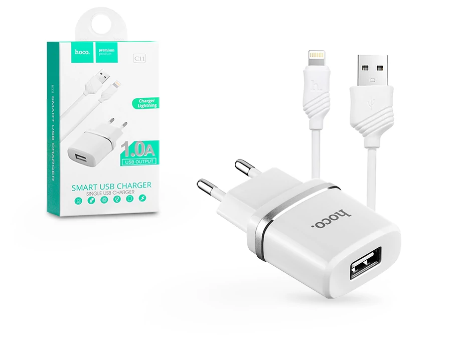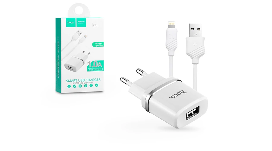 | HOCO hálózati töltő adapter + lightning kábel - 5V/1A - HOCO C11 - fehér | |