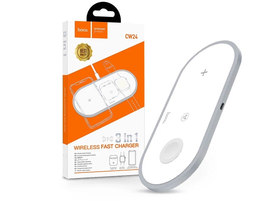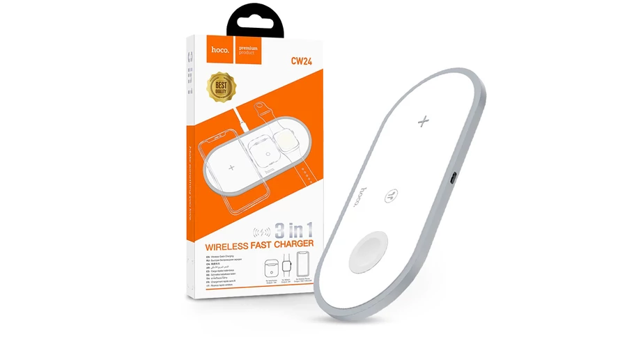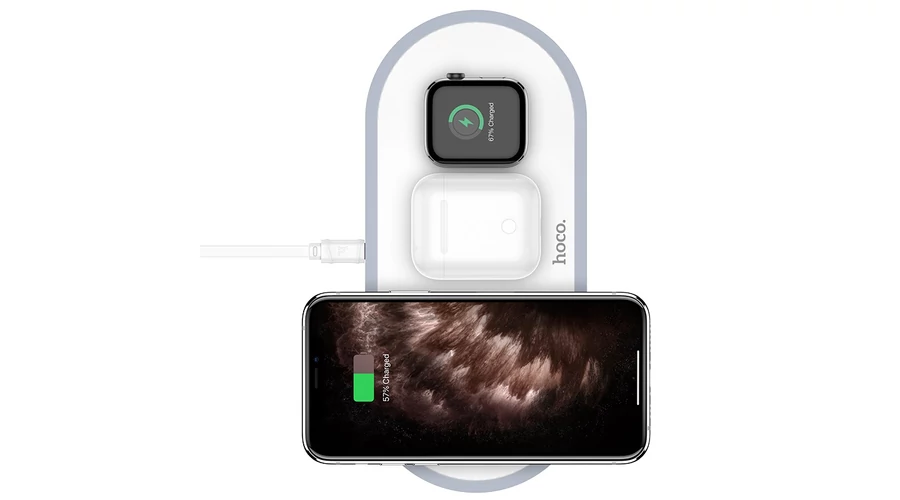 - HOCO CW24 Handsome 3 az 1-ben vezeték nélküli töltő mobiltelefonok / intelligens karóra / headset töltésére
