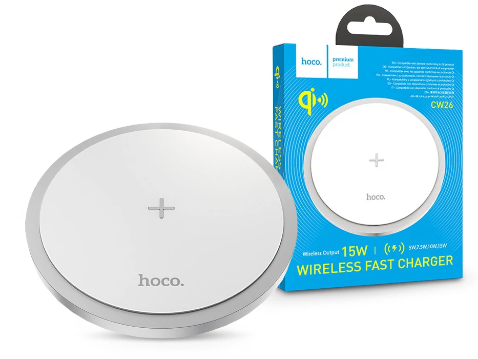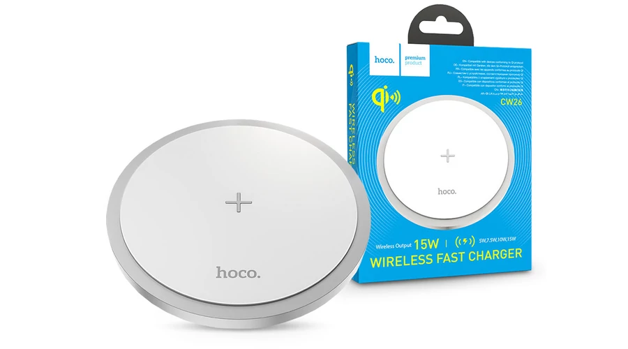 - HOCO CW26 nagy teljesítményű vezeték nélküli töltő 7,5 W / 10 W / 15 W mobiltelefonokhoz és TWS headsetekhez