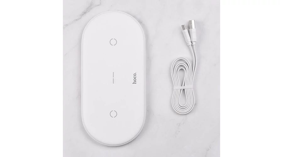 HOCO Qi univerzális vezeték nélküli töltő állomás - 5V/3A - HOCO CW23 Dual 2in1 Wireless Charger - fehér - Qi szabványos