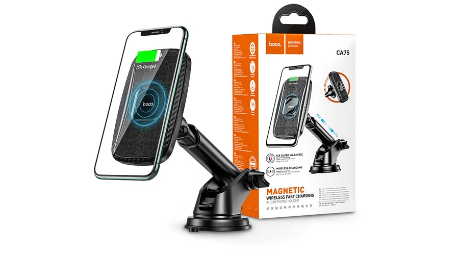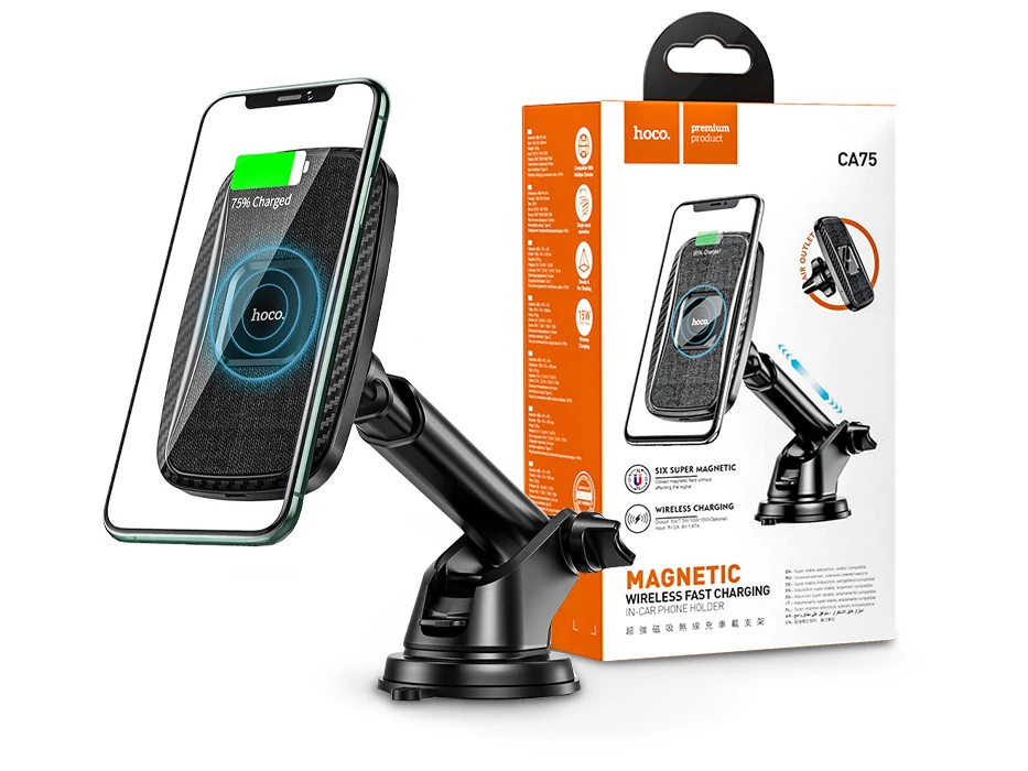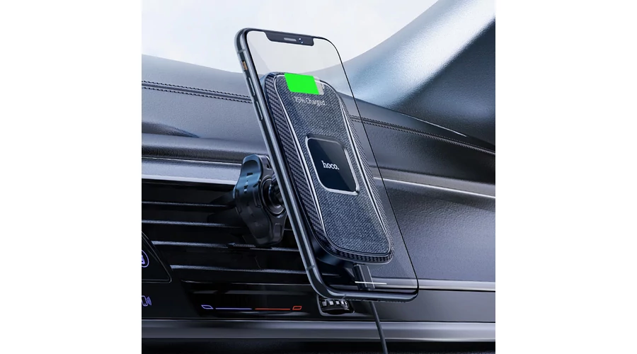 - HOCO CA75 szélvédőre/műszerfalra/szellőzőrácsba illeszthető mágneses autós tartó vezeték nélküli töltő funkcióval