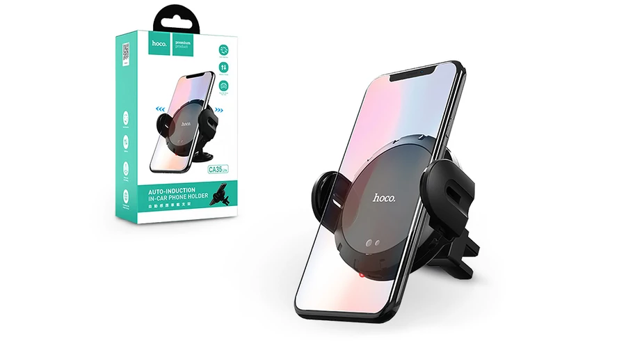 | HOCO szellőzőrácsba illeszthető/műszerfalra ragasztható vezeték nélküli autós töltő/tartó - 5V/2A - HOCO C35 Lite - fekete | |