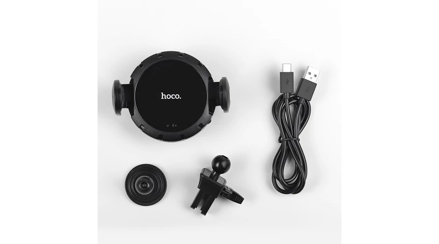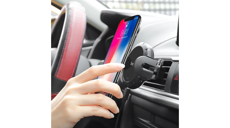 HOCO szellőzőrácsba illeszthető/műszerfalra ragasztható vezeték nélküli autós töltő/tartó - 5V/2A - HOCO C35 Lite - fekete