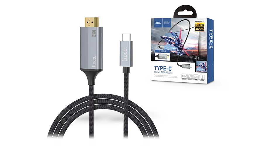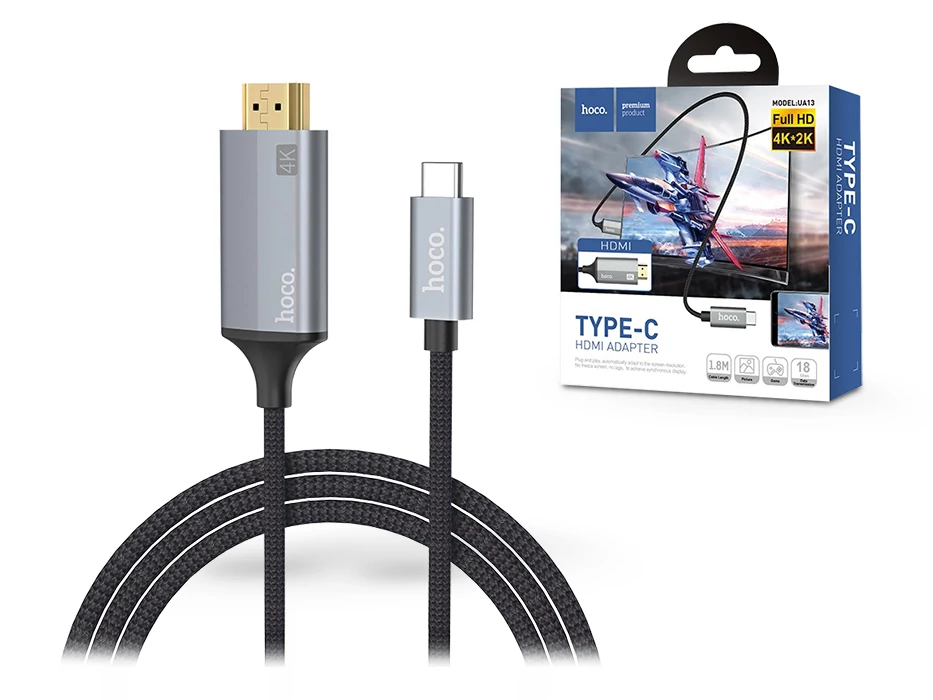 | HOCO Type-C + HDMI kábel 1,8 m-es vezetékkel - HOCO UA13 Type-C to HDMI Adapter Full HD/4K - szürke/fekete | |