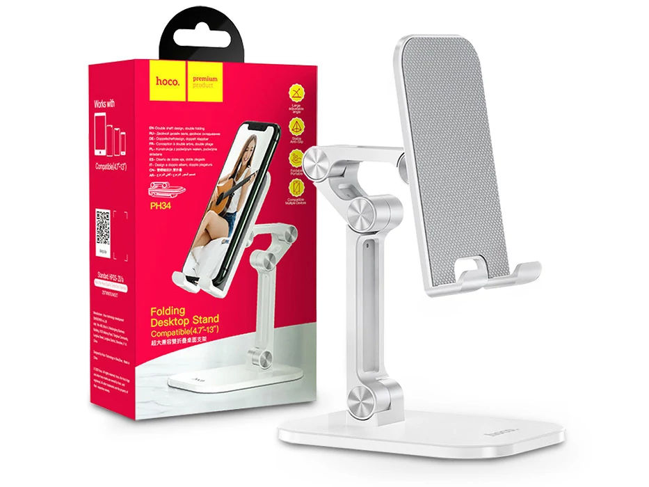 HOCO univerzális asztali telefon/tablet tartó 4,7-13" méretű készülékhez - HOCO PH34 Folding Desktop Stand - fehér