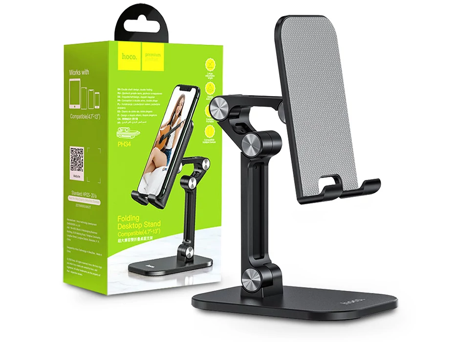 HOCO univerzális asztali telefon/tablet tartó 4,7-13" méretű készülékhez - HOCO PH34 Folding Desktop Stand - fekete