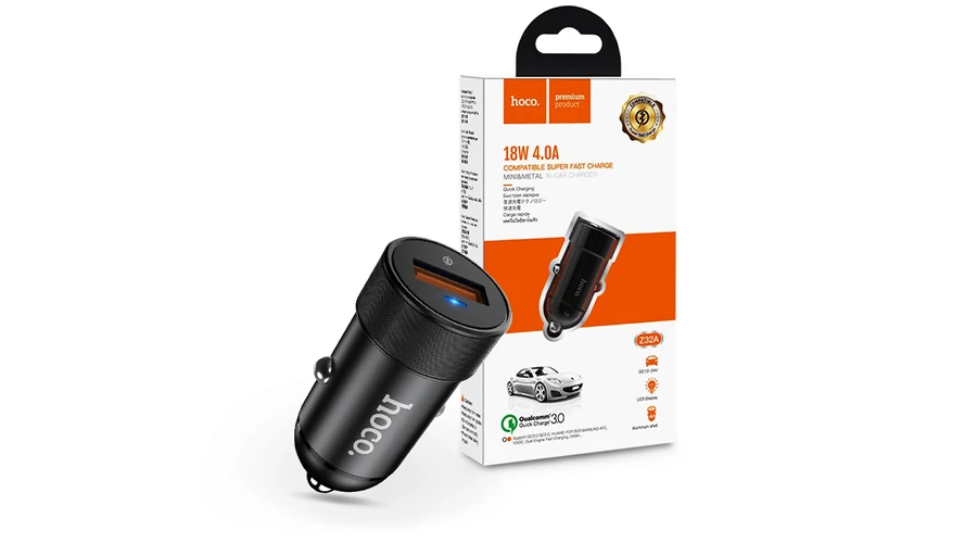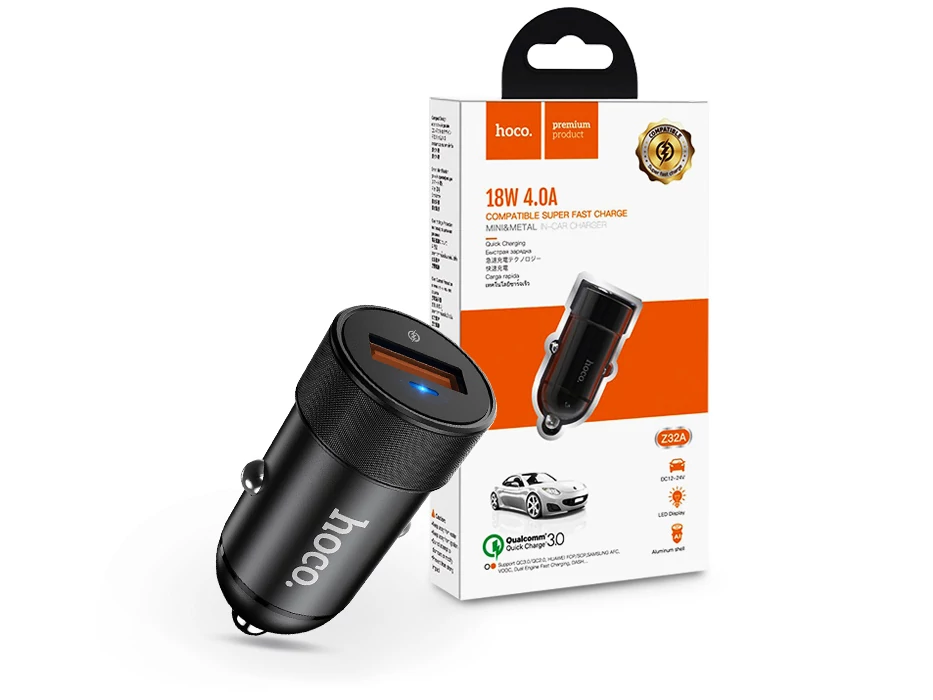 | HOCO USB szivargyújtós töltő adapter - 5V/4.0A - HOCO Z32A Mini Metal Super Fast Charger QC3.0 - fekete | |