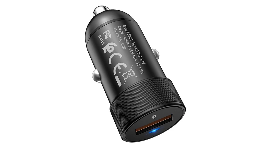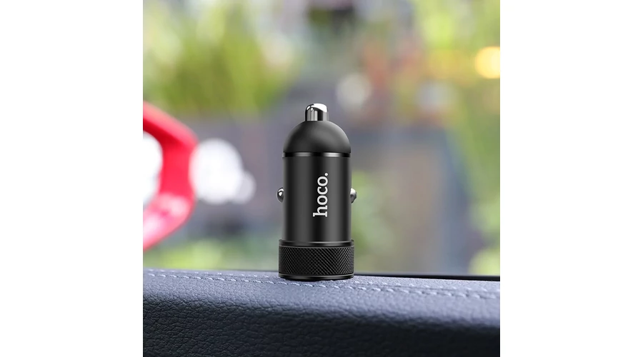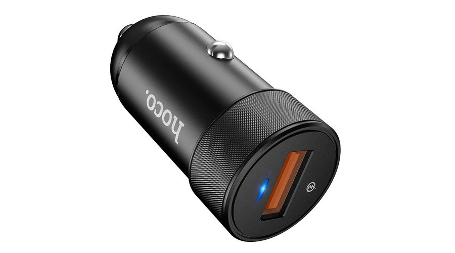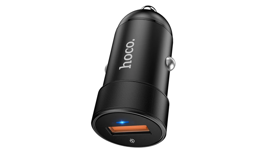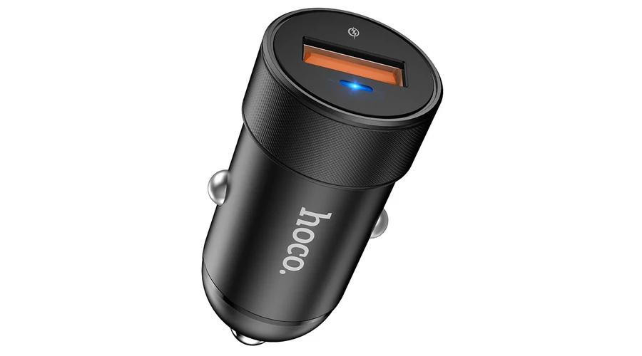 HOCO USB szivargyújtós töltő adapter - 5V/4.0A - HOCO Z32A Mini Metal Super Fast Charger QC3.0 - fekete
