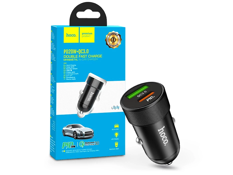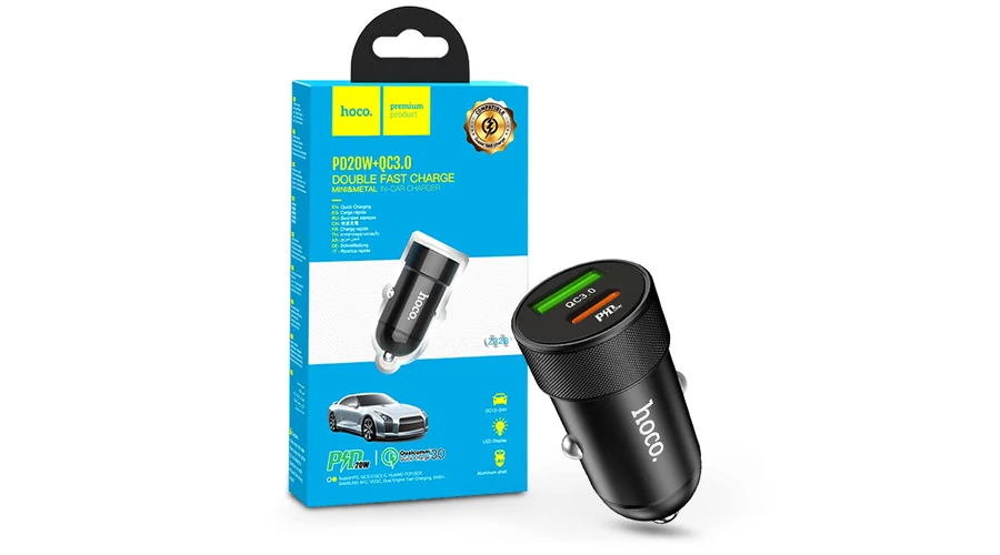 | HOCO USB + Type-C szivargyújtós töltő adapter - 5V/4A - HOCO Z32B PD20W + QC3.0 Car Charger - fekete | |