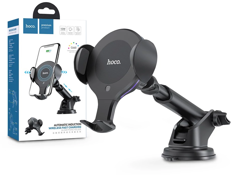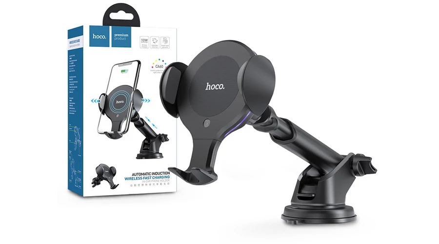 HOCO CA60 infravörös érzékelős, műszerfalra, szélvédőre helyezhető, szellőzőrácsba illeszthető vezeték nélküli töltő/autós telefontartó