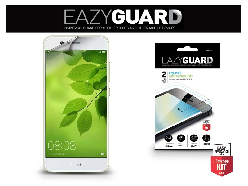 * törlőkendő, EasyApp KIT a könnyű felhelyezéshez, segédeszköz a felsimításhoz, lehúzók (ragasztócsíkok a leválasztandó réteg megfogásához), használati utasítás