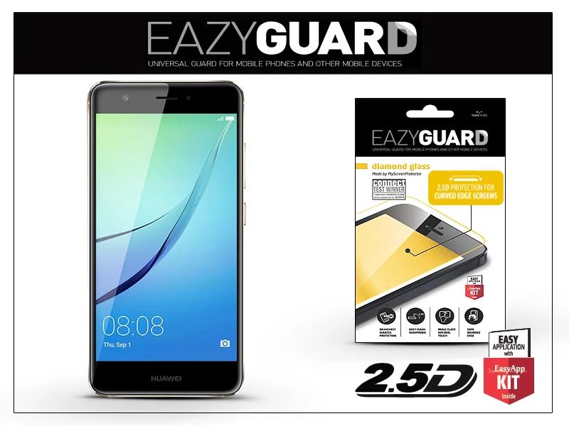 Egyszerűen és precízen felhelyezhető a csomagolásban található EasyApp KIT segítségével.