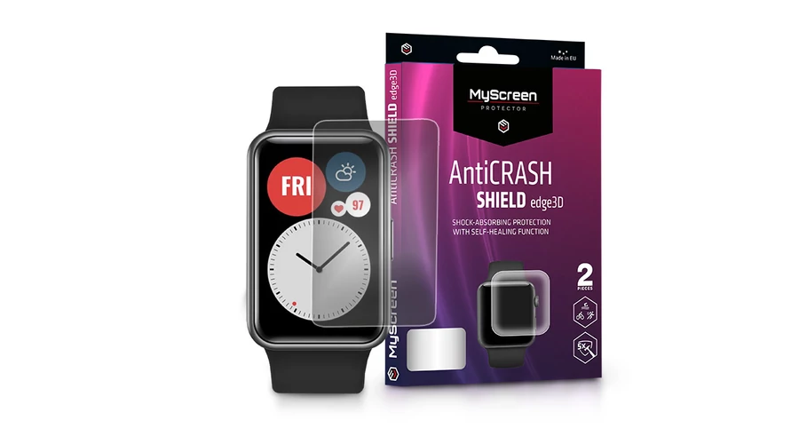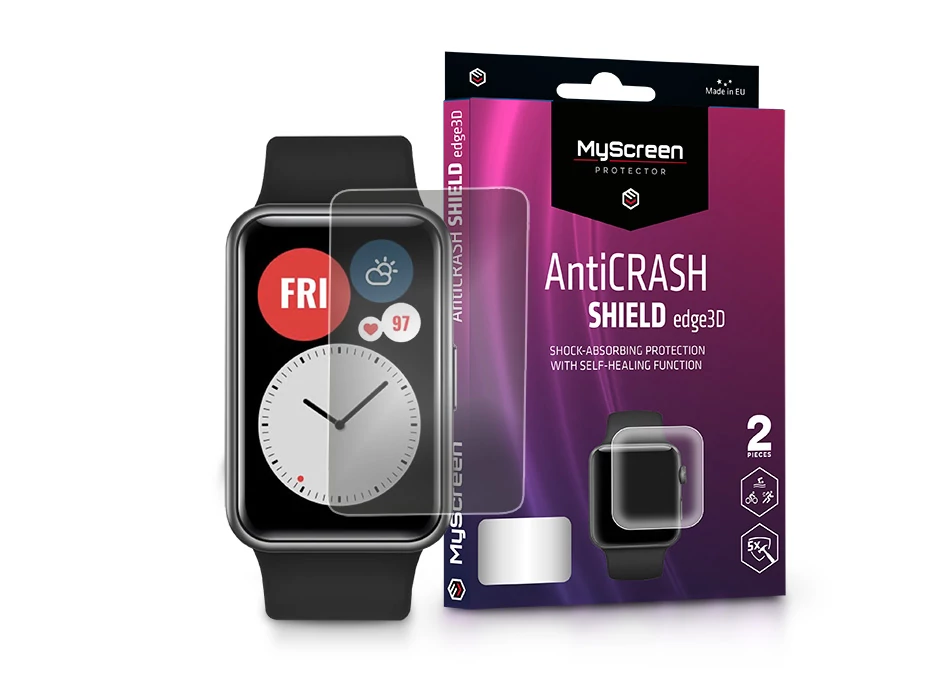 - Az AntiCRASH SHIELD edge3D védőfólia a legjobb védelem a sík és lekerekített képernyők számára, amely akár ötször, ismétlem ötször, megerősíti az okosórát egy esés során.
