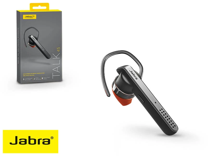 - 1 Jabra Talk 45 fejhallgató, 3 füldugó (egy előszerelt standard füldugó), 2 fülhallgató (S & L), 1 USB töltőkábel, 1 autós töltő, gyors üzembe helyezési útmutató, figyelmeztető és garancialevelek
