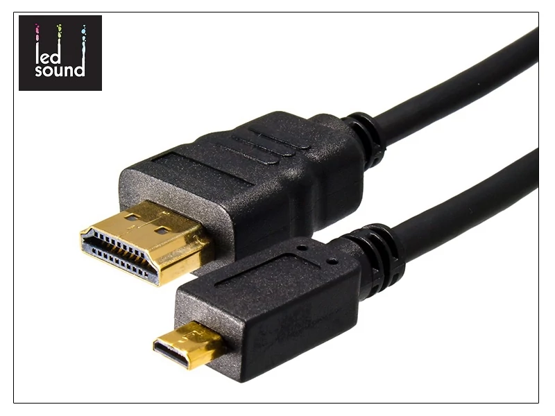 LED Sound micro HDMI - HDMI 1.4 3D aranyozott kábel 150 cm-es vezetékkel - fekete