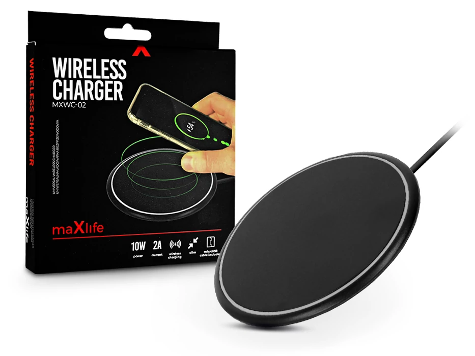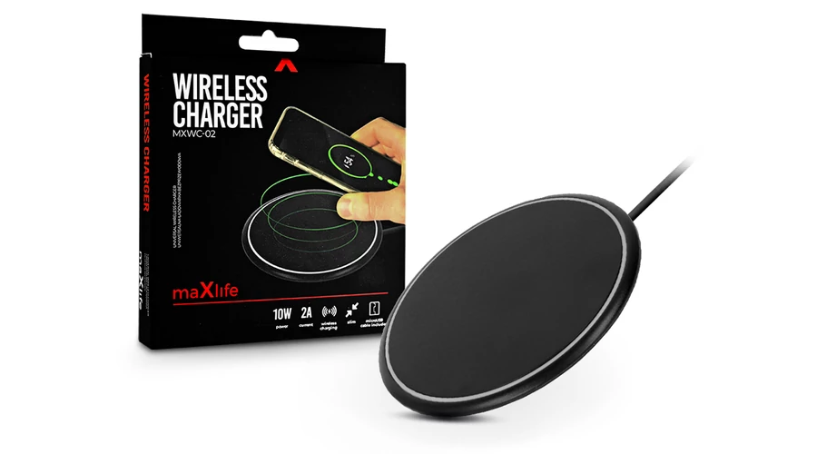 Maxlife Qi univerzális vezeték nélküli töltő állomás - 5V/2A - 10 W - Maxlife MXWC-02 Wireless Charger - Qi szabványos - fekete