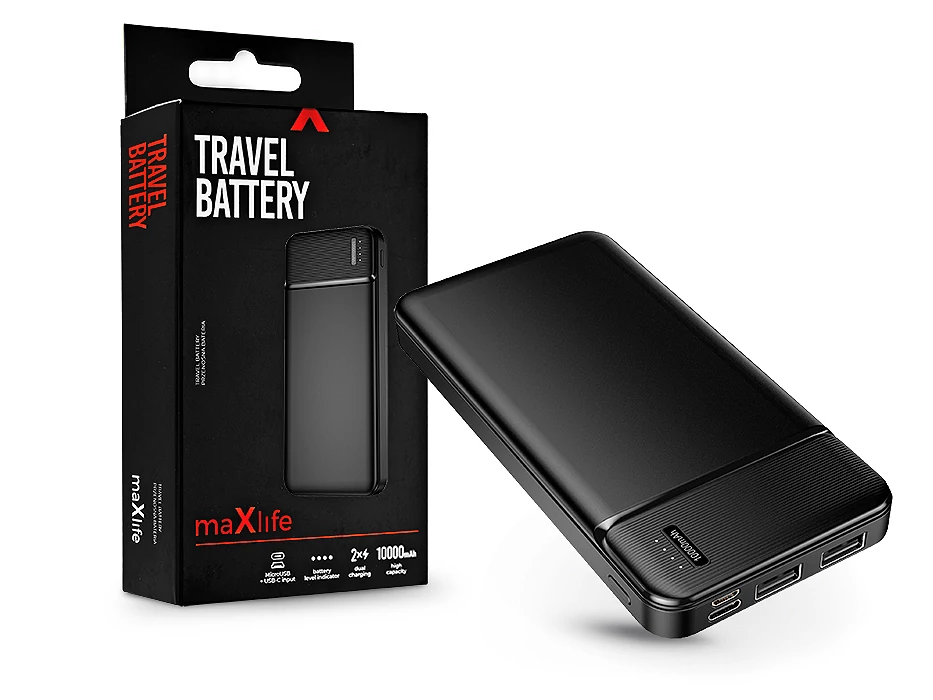 - A Maxlife power bankja 10.000 mAh-val, 2 USB kimenettel rendelkezik, így egyszerre több eszközt is tölthet.