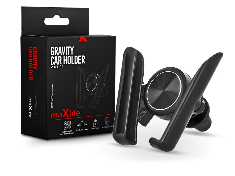 Maxlife univerzális szellőzőrácsba illeszthető autós tartó - Maxlife MXCH-14 Gravity Car Holder - fekete
