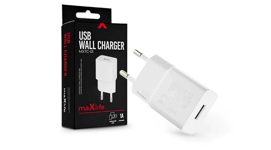 | Maxlife USB hálózati töltő adapter - Maxlife MXTC-01 USB Wall Charger - 5V/1A - fehér | |