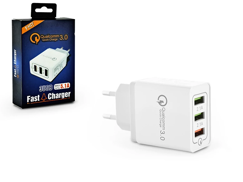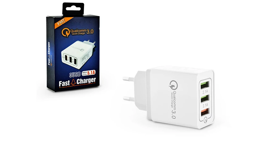 Qualcomm 3xUSB hálózati gyorstöltő adapter - 5V/5,1A - Qualcomm Quick Charge 3.0 - fehér