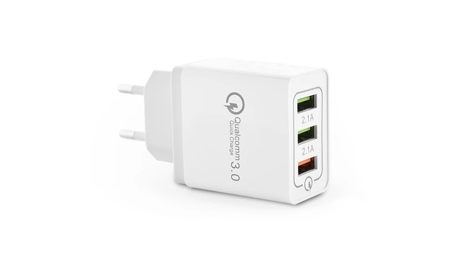Qualcomm 3xUSB hálózati gyorstöltő adapter - 5V/5,1A - Qualcomm Quick Charge 3.0 - fehér (ECO csomagolás)