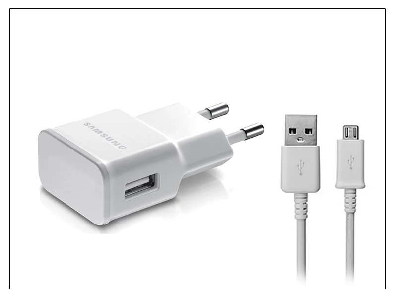 | Samsung gyári USB hálózati töltő adapter + micro USB adatkábel - 5V/1A - ETA0U81EWE +ECB-DU4AWE/EWE white (ECO csomagolás) | |