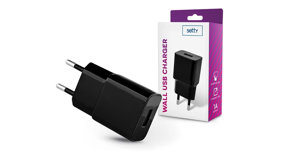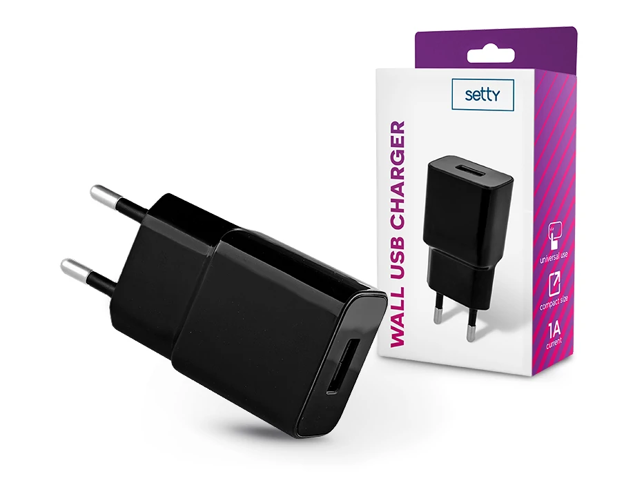 Setty USB hálózati töltő adapter - Setty USB Wall Charger - 5V/1A - fekete