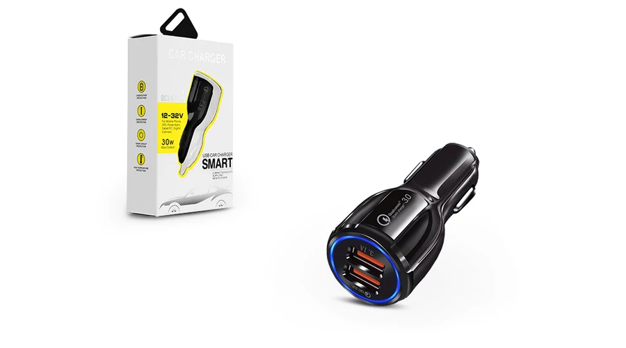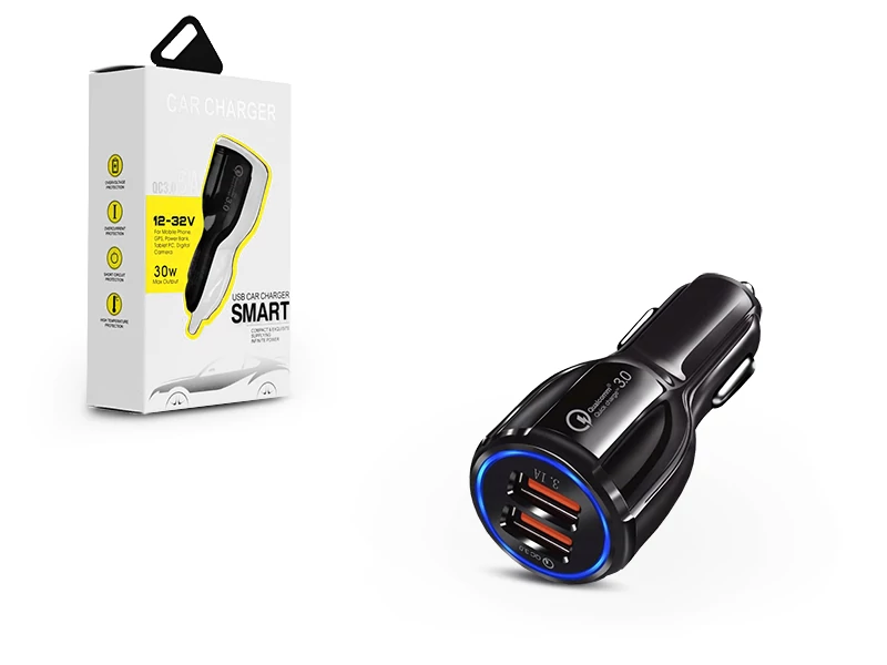 Smart Dual USB szivargyújtós töltő adapter - 5V/3,1A/9V/2A/12V/1,6A - Smart QC3.0 Car Charger - Qualcomm Quick Charge 3.0 - black