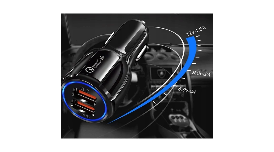 | Smart Dual USB szivargyújtós töltő adapter - 5V/3,1A/9V/2A/12V/1,6A - Smart QC3.0 Car Charger - Qualcomm Quick Charge 3.0 - black | |