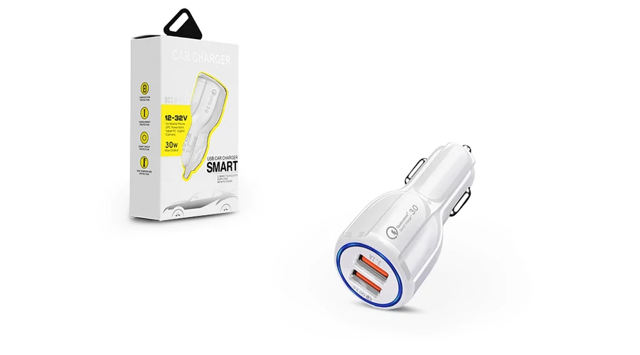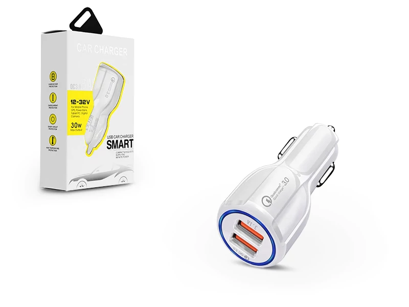 Smart Dual USB szivargyújtós töltő adapter - 5V/3,1A/9V/2A/12V/1,6A - Smart QC3.0 Car Charger - Qualcomm Quick Charge 3.0 - white