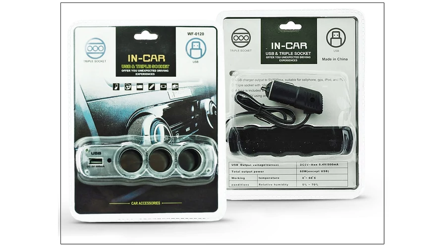 | Szivargyújtó töltő elosztó 3in1 + 1xUSB csatlakozóval(12V) | |