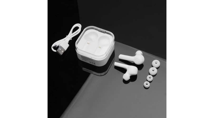 TWS sztereó Bluetooth headset v5.0 + töltő dokkoló - TWS EP002 Earphone + Wireless Charging - white