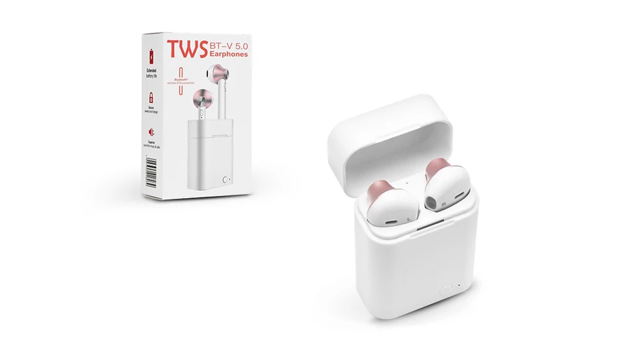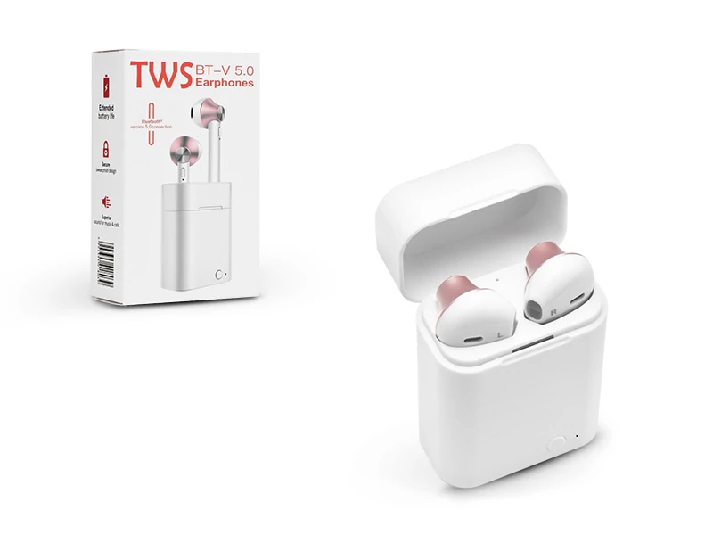 | TWS sztereó Bluetooth headset v5.0 + töltő dokkoló - TWS EP003 Earphone - white/pink | |