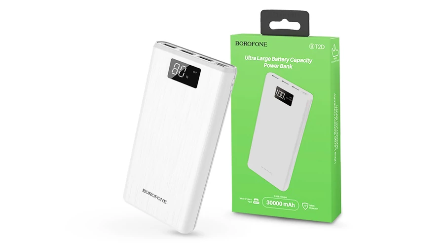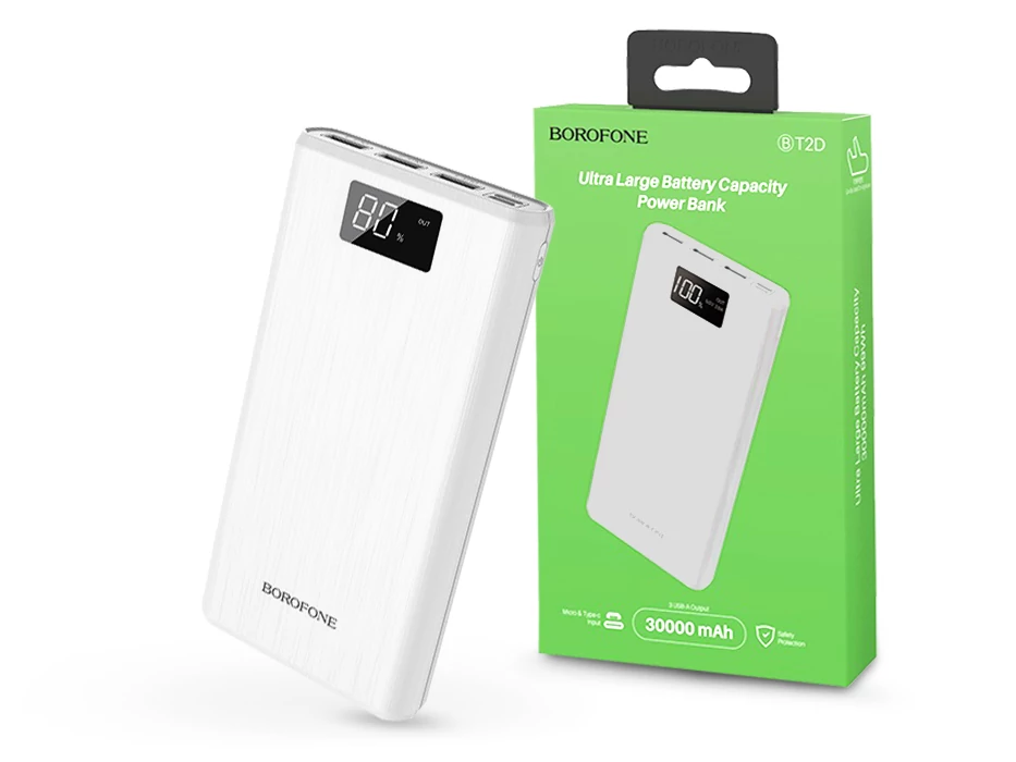 - BOROFONE BT2D Fullpower, mobil power bank Micro-USB / USB-C bemenettel, 3x USB 1A / 2A kimenettel, LED-es teljesítményszint kijelzővel